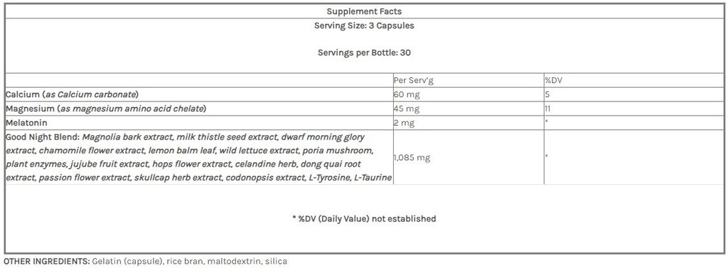 Take 3 capsules 30 to 60 minutes before bed with 8oz water. May reduce to 2 capsules if satisfied with results, or as directed.