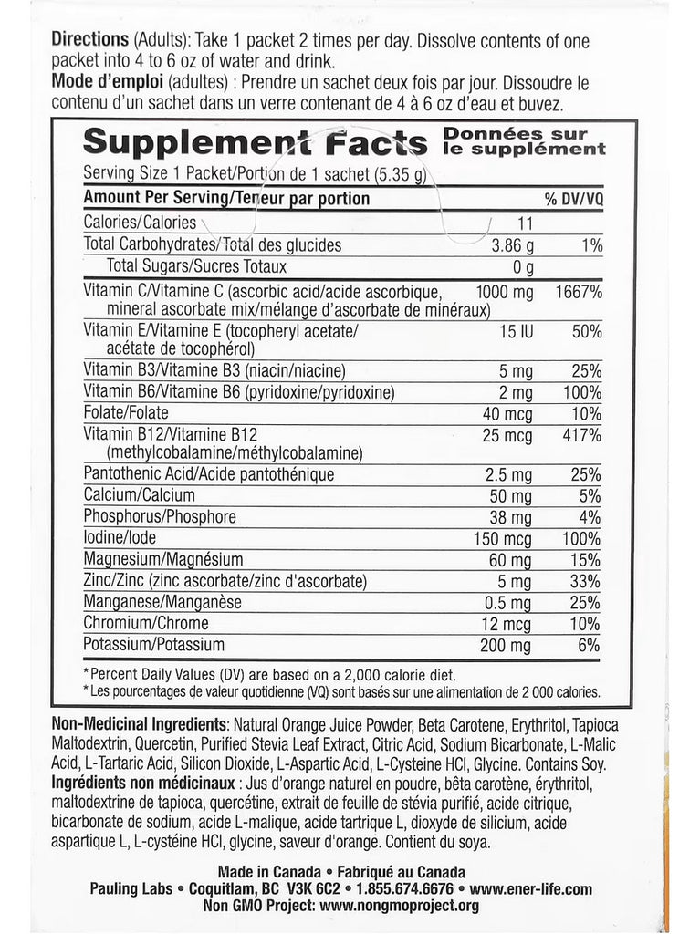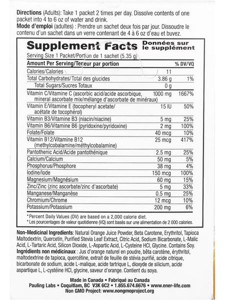 Ener-Life, Ener-C, Sugar Free, Bubbly Multivitamin Drink Mix Vitamin C, 1,000 mg, Orange, 30 Packets/Sachets