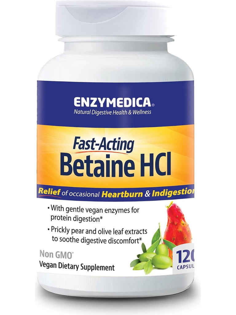 - Betaine HCl increases acid levels so your stomach can naturally digest properly. Enzymes are added to support gentle digestion, while MucoSave, a combination of prickly pear and olive leaf extracts, soothes the stomach lining.