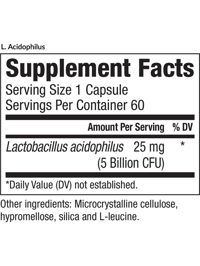 Adding the benefits of beneficial probiotics is an important aspect of healthy digestion, yet many probiotics contain dairy which can be counter-productive. Our L. Acidophilus provides a dairy-free dose of powerful probiotics that supports healthy digestion, maintains microflora balance, and can help reduce bloating and gas.