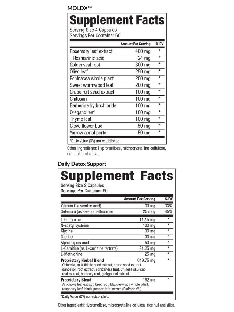 Exposure to mold and fungus is unavoidable, but if your immune system is not functioning at optimal levels, it can leave your body unable to fight off these harmful mycotoxins. Mold toxicity can present a number of challenges for your health, impacting your vitality, energy, and overall wellness. The Mold Detox protocol has been specifically designed with ingredients that seek out mycotoxins and mold spores and break them down, so that they can be pushed to the liver and safely removed – all while boosting your body's natural immune response.