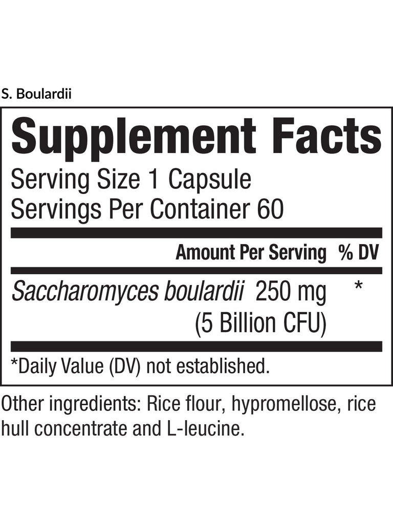 - 5 billion colony forming units (CFUs) of Saccharomyces boulardii per serving