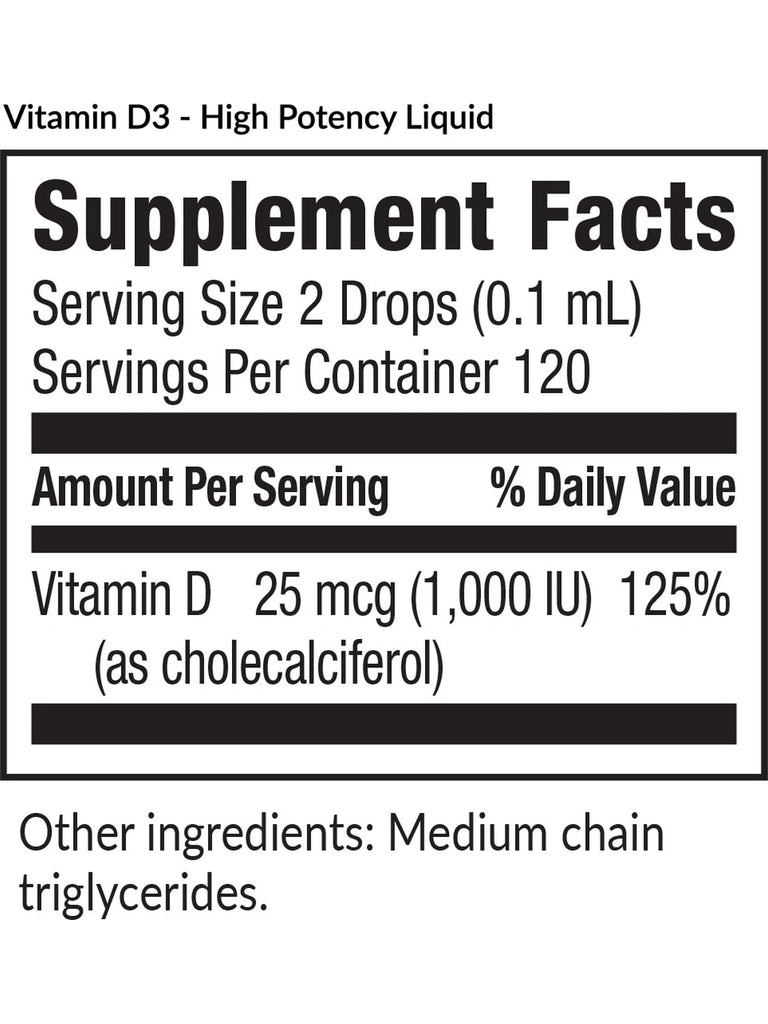 Ensuring your immune system is robust is crucial, but obtaining enough high-quality vitamin D through the diet or sunshine alone can be difficult if not impossible. Vitamin D3: High-Potency Liquid is a convenient, high-potency liquid formula to quickly and easily add the benefits of Vitamin D3 to your day. This easy to digest, fat-soluble, tasteless formulation has been proven to enhance absorption and utilization in the body.