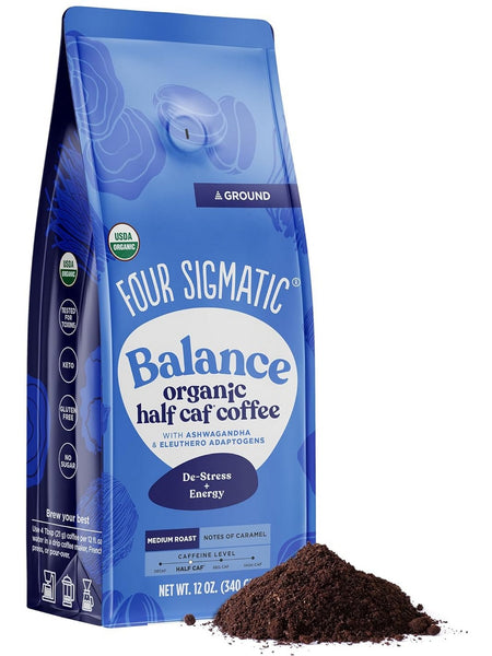 Four Sigmatic, Balance Organic Half Caf Coffee with Ashwagandha and Eleuthero Adaptogens, 10 oz