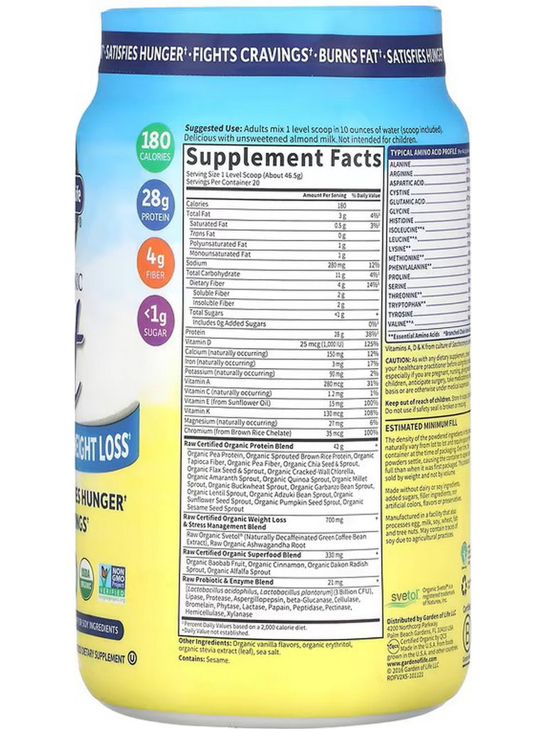 Garden of Life, Raw Organics, Fit High Protein Weight Loss, Vanilla, 32.80 oz