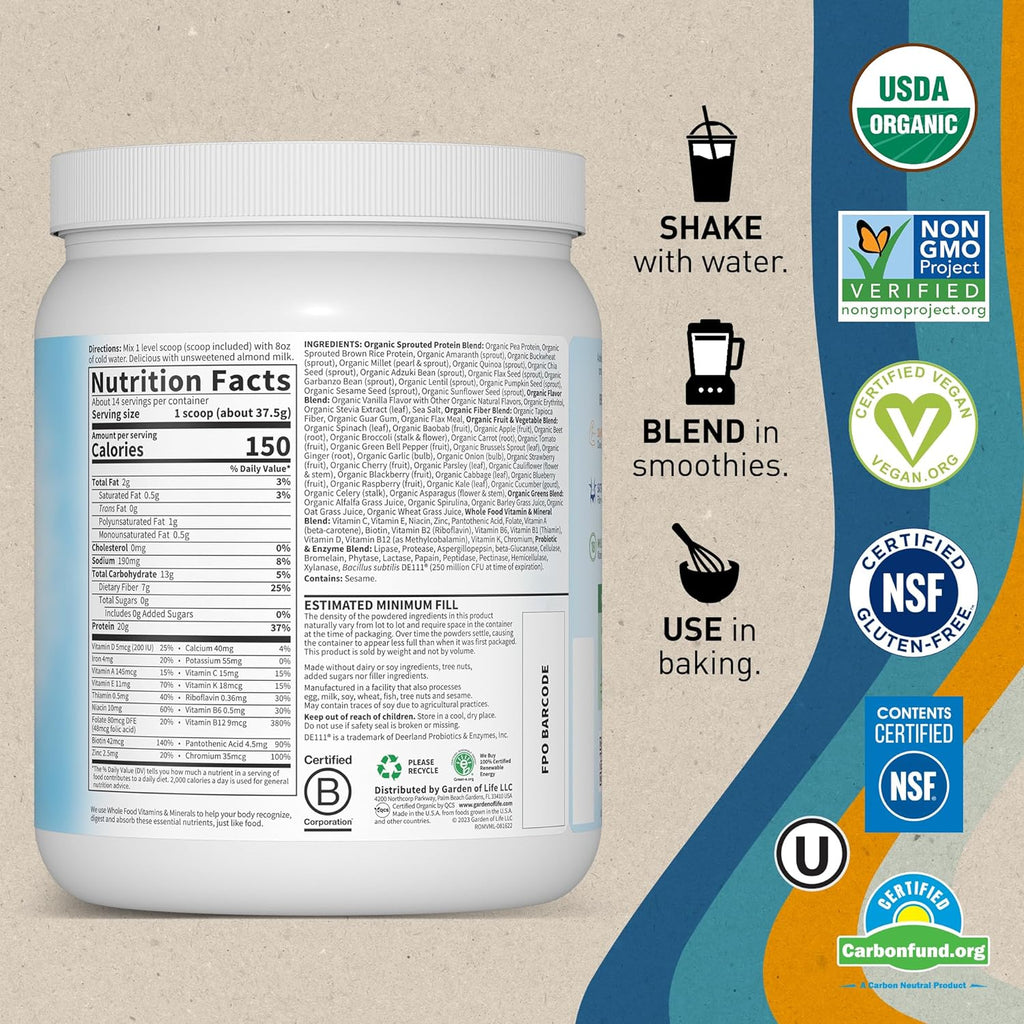 Garden of Life, Raw Organics, Meal, Vanilla, 18.52 oz