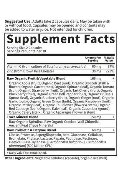 Adults take 2 capsules daily. May be taken with or without food. Capsules can be opened. Contents can be taken directly with water or raw juices. Not intended for children.