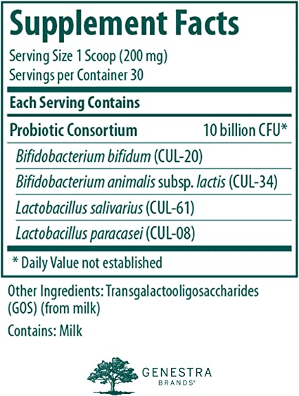 Children (1-4 years): In a glass, add water or milk to one scoop of HMF Baby B and mix. Take once daily with a meal, at least two to three hours before or after taking antibiotics, or as recommended by your healthcare practitioner.