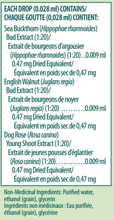 In addition‚ the sea buckthorn‚ English walnut‚ and dog rose extracts in each dose of Imu-gen are harvested in the spring‚ which is the most active phase of the growth cycle and when their extracts may be most beneficial. Sea buckthorn grows in the Himalayas above sea level‚ and develops nutritional defenses against the altitude and weather.