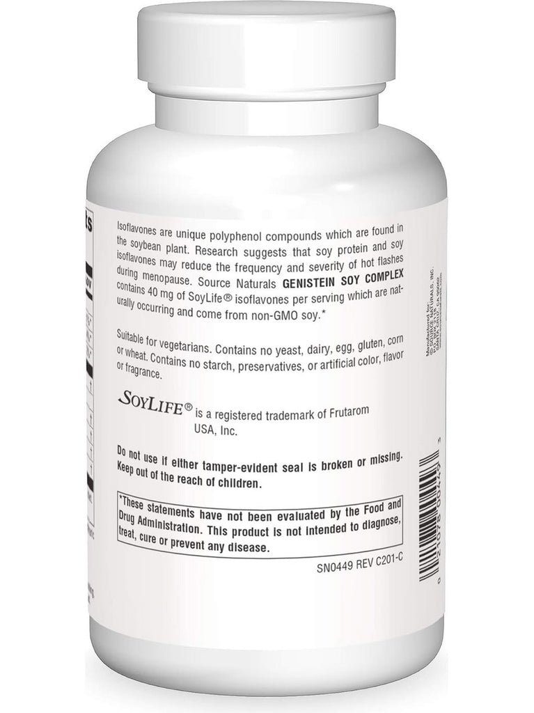 Source Naturals Genistein Soy Complex is made from isoflavone-rich soybean powder that yields a consistent standardized isoflavone content. This unique chemical-free process requires approximately 400 pounds of soybeans to yield just one pound of finished product.