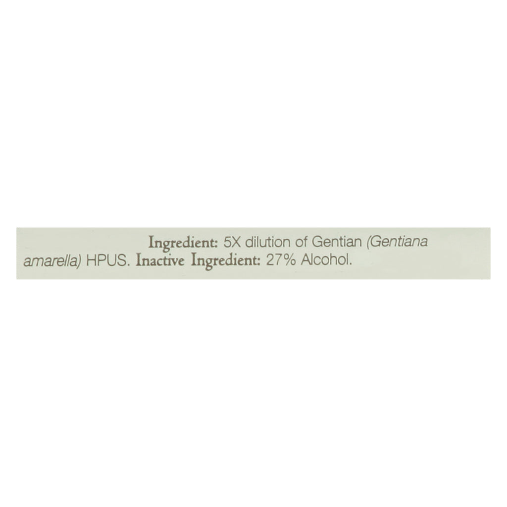 ACTIVE INGREDIENTS: 5x dilution of Gentiana Amarella HPUS. INACTIVE INGREDIENTS: 27% Alcohol.