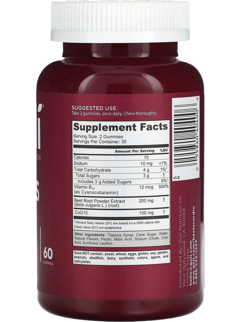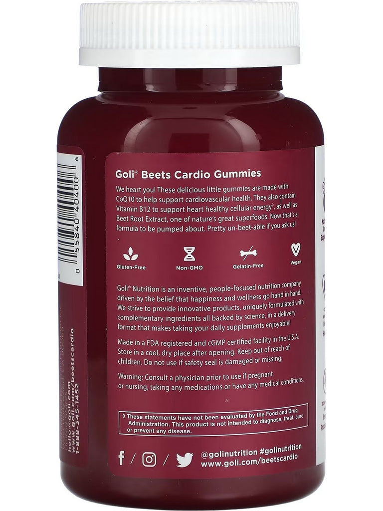 Goli Nutrition, Beets Cardio Gummies, Beet Root Powder Extract, 60 Gummies