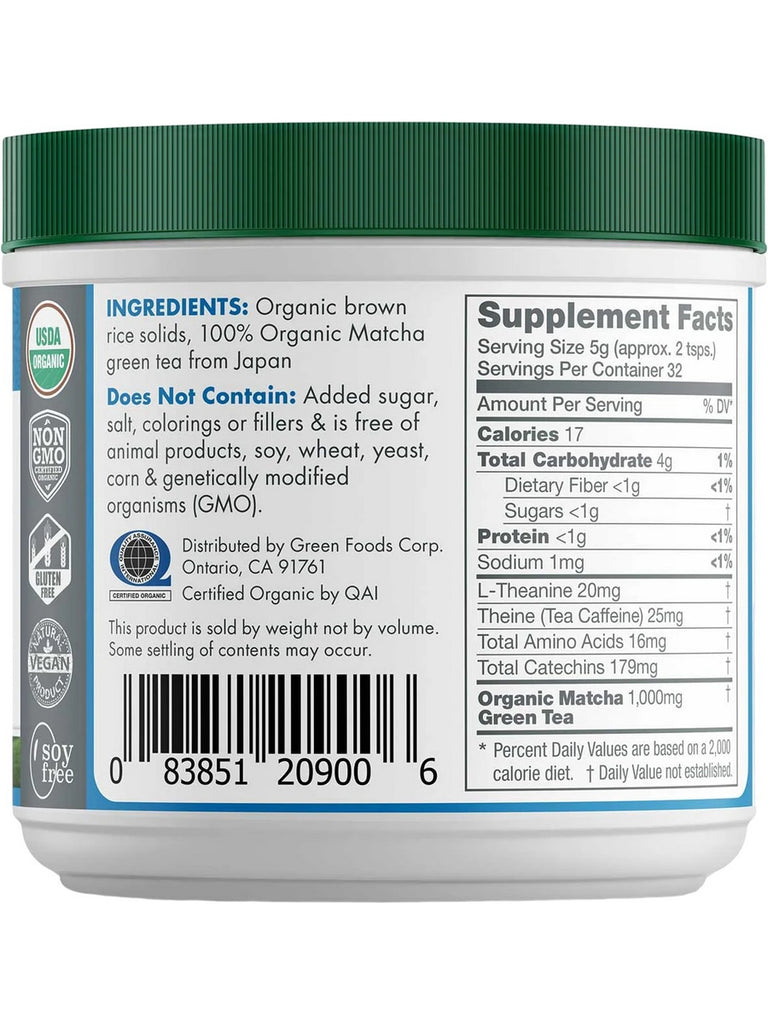 Green Foods, Ceremonial Grade Matcha Green Tea Energy Blend, 5.5 oz