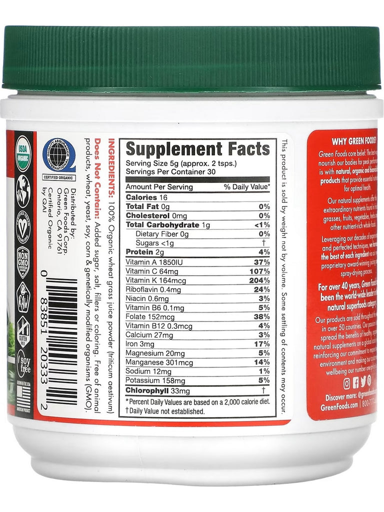 Green Foods Wheat Grass Shots is essentially the powdered version of the wheat grass juice so popular at spas, health clubs, gyms and smoothie bars. For convenience and quality, look no further for the perfect Wheat Grass Shot.