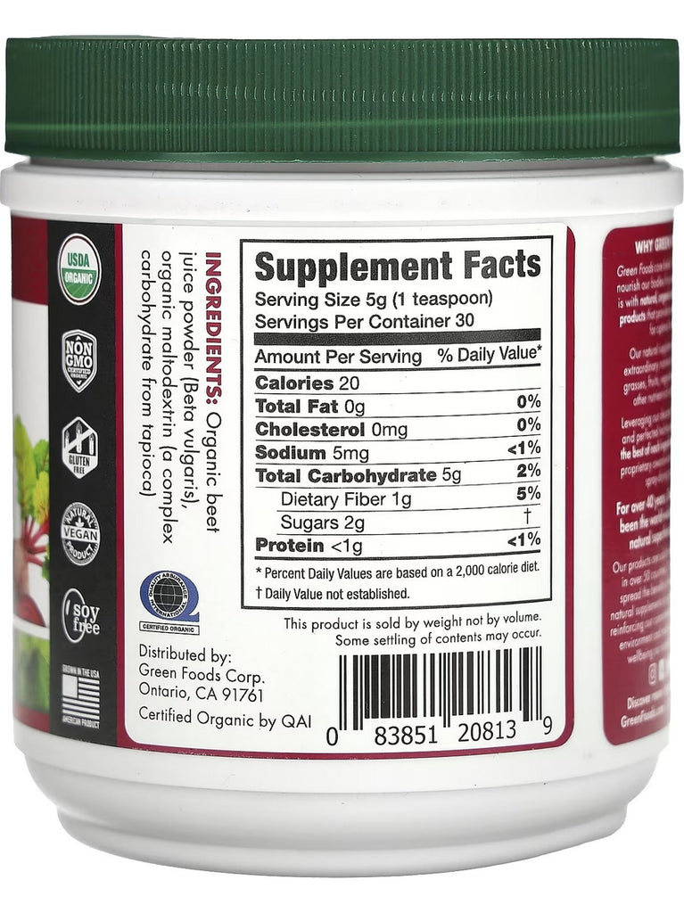 Green Foods, Organic Beet Essence Juice Powder, 5.3 oz