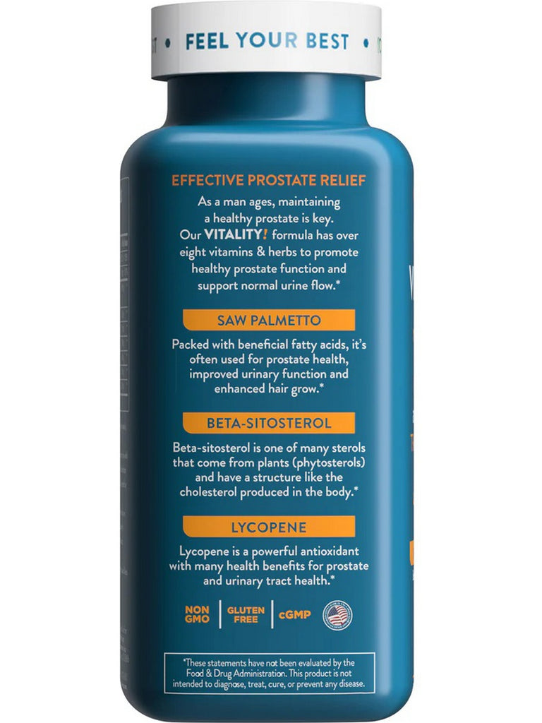 - Promote Healthy Prostate Size: Saw palmetto is rich in compounds that support a normal prostate size. Combined with Phyosterols and lycopene, Health Logics Vitality! is there to support prostate and urinary tract health for men.