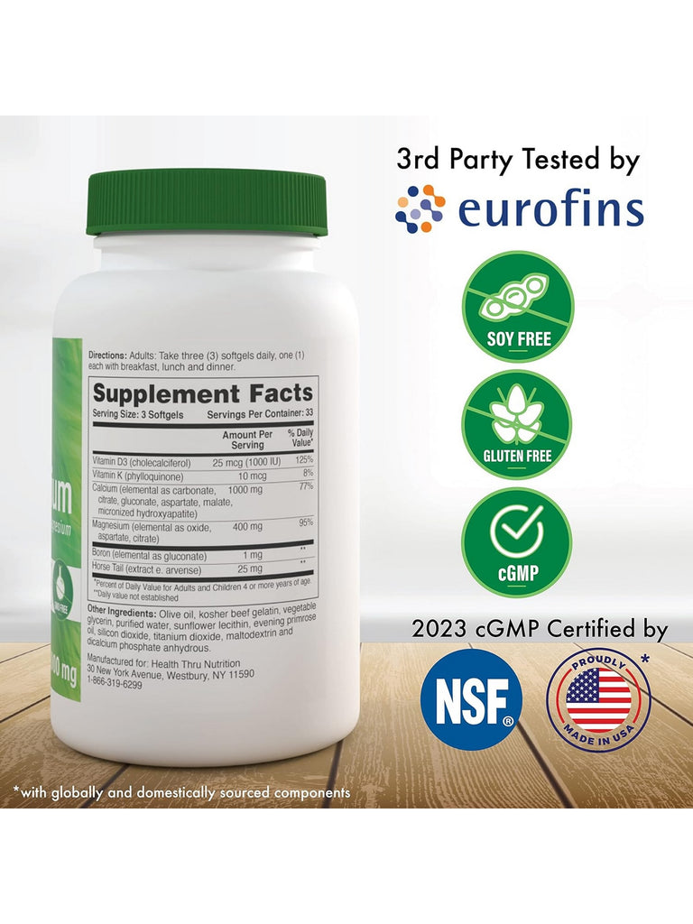 Health Thru Nutrition, Liquid Calcium with Vitamin D3 and Magnesium 1000 mg, 100 Softgels