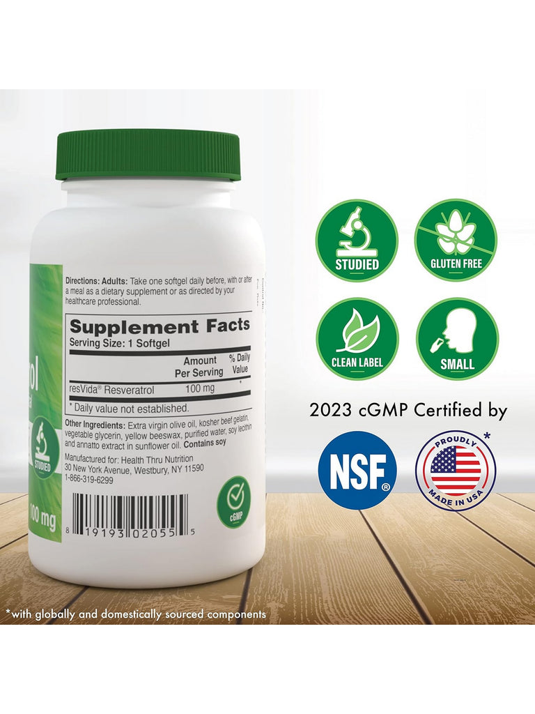 Health Thru Nutrition, Resveratrol ResVida 100 mg, 60 Softgels