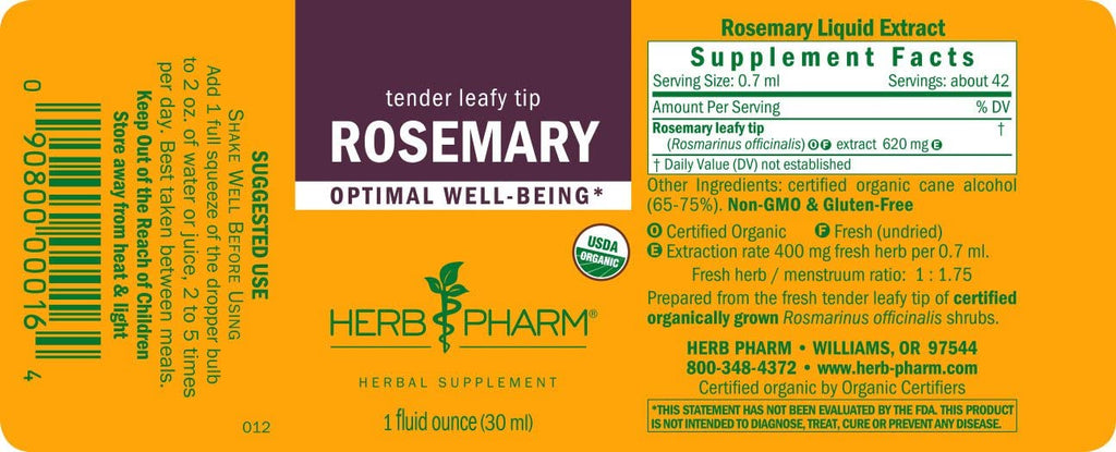 We prepare Rosemary extract from the fresh (never dried) leafy tip of Rosmarinus officinalis shrubs grown on our own Certified Organic farms in southern Oregon. Each fall, we extract the fresh, tender new growth while the plant's aromatics are at their peak.