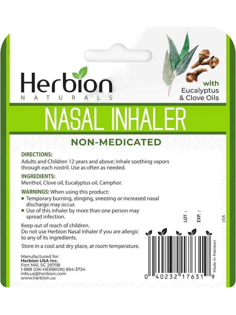Herbion Nasal Inhaler contains a non-medicated solution that clears clear blocked nasal passages quickly and effectively, promoting easy breathing and reducing discomfort.