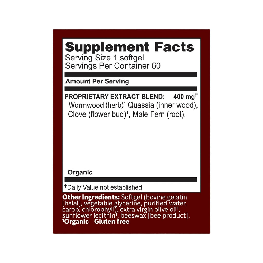 ParaFree is made with intestinal cleansing herbs, including Wormwood, Quassia and Male Fern.