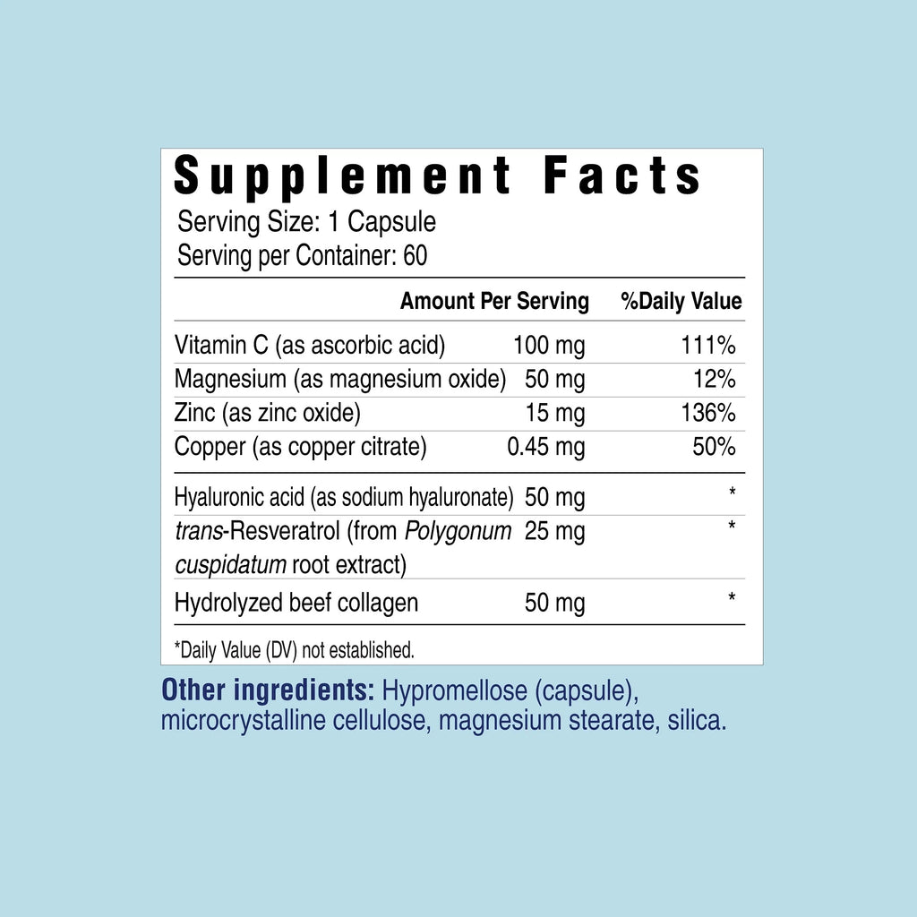 Beauty capsules also includes vitamin C and trans-Resveratrol both known to enhance supple skin to help fight the signs of aging. Vital minerals are in the formula such as magnesium, copper, and zinc. Many people have incorporated zinc in their daily regimen to promote immune health and enhance metabolism. Beauty is more than skin deep, so incorporating Her Own Beauty daily may promote skin health from the inside out.