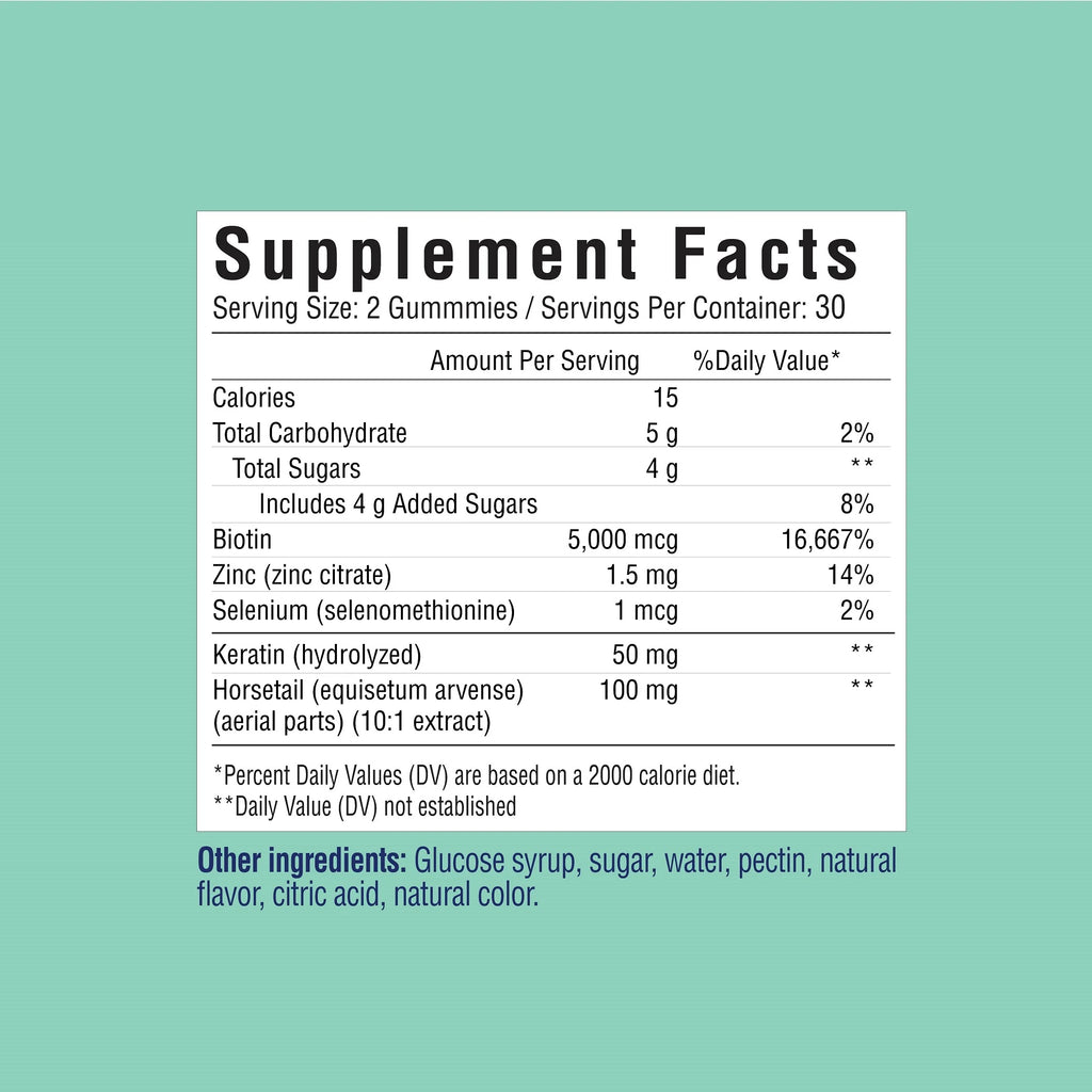 Want thicker, fuller hair? Her Own Grow Gummy is a comprehensive beauty formula with biotin, keratin, and horsetail. Biotin has been shown to enhance hair shine, volume, and scalp coverage in women who experience thinning hair, along with skin's hydration and smoothness. Keratin may strengthen hair and make it look brighter and feel softer. Finally, the silica in horsetail has been shown to encourage hair growth and thickness. Using this extract also impacts collagen production in a positive way to promote hair appearance.