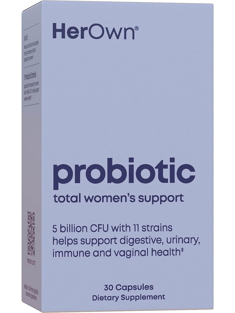 Her Own Probiotic Capsules are a powerful once-daily women’s supplement made with 11 complementary strains of probiotic flora, providing 5 billion CFUs of desired “good” bacteria.
