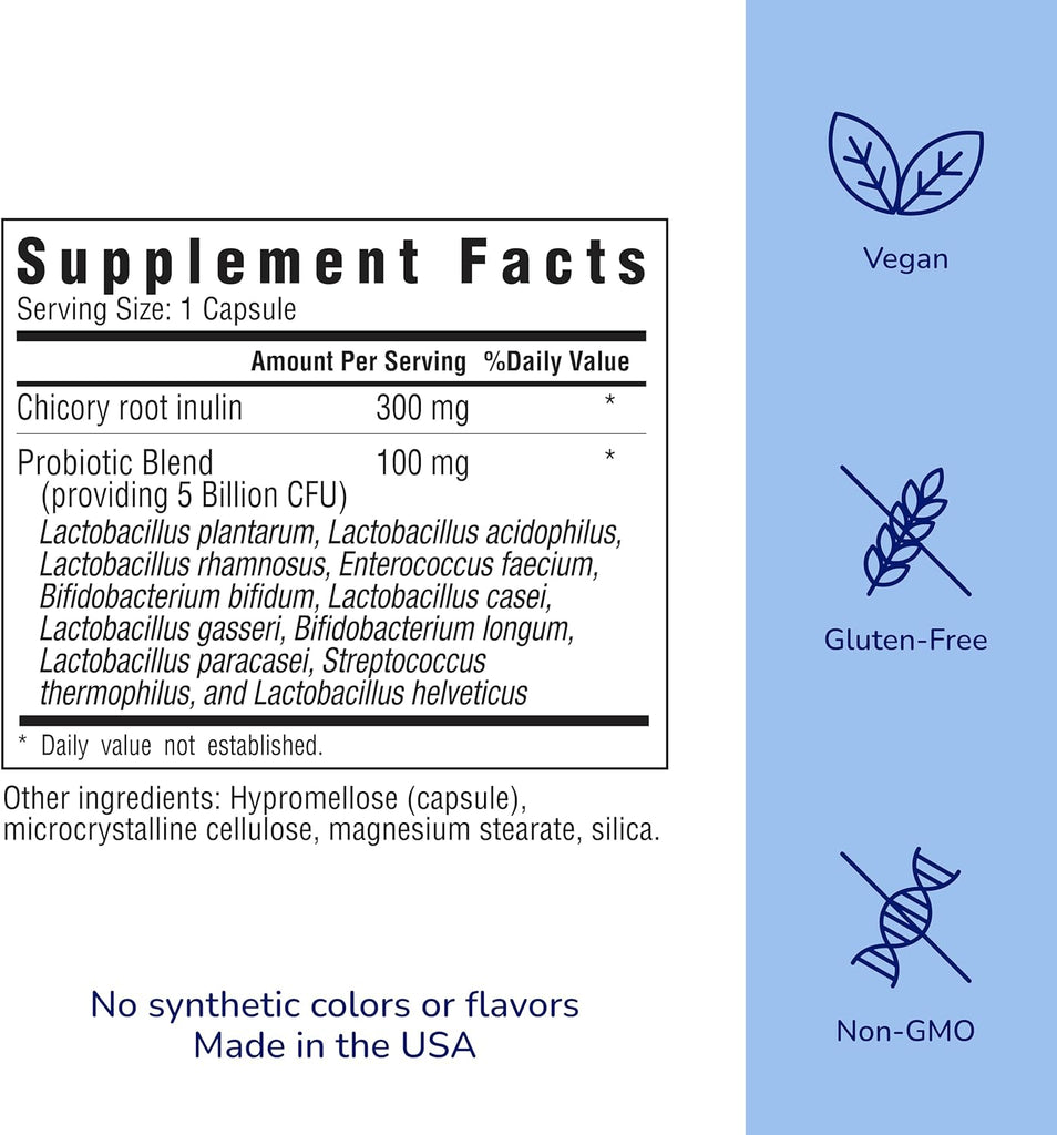To ensure proper absorption and to “feed” the probiotic bacteria in your gut, Her Own Probiotic also includes 300 mg of inulin, a prebiotic fructooligosaccharide fiber valued for its ability to support a healthy digestive system.
