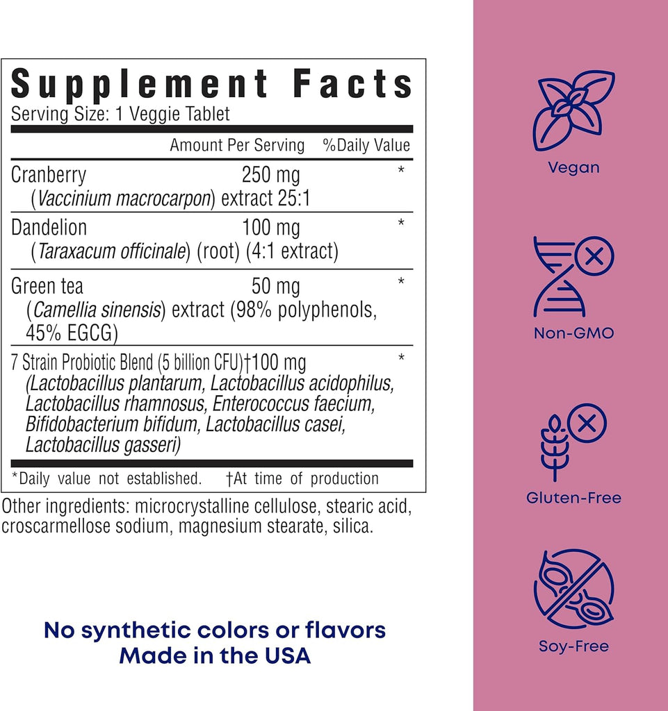 Relieve UTI symptoms while maintaining a healthy urinary tract. With a blend of key natural active ingredients, restoring and maintaining vaginal health has never been easier. This advanced formulation helps relieve UTI symptoms, provides urinary tract balance and supports overall vaginal well-being.