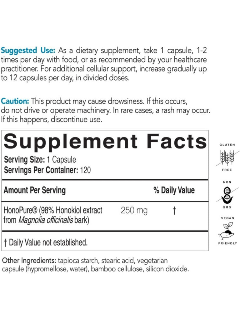 HonoPure is 98% pure honokiol—an extensively researched, highly active extract purified from Magnolia officinalis bark. HonoPure provides a remarkable range of potent benefits including cognitive and neurological support, cellular regulation, relaxation and healthy mood, and more.