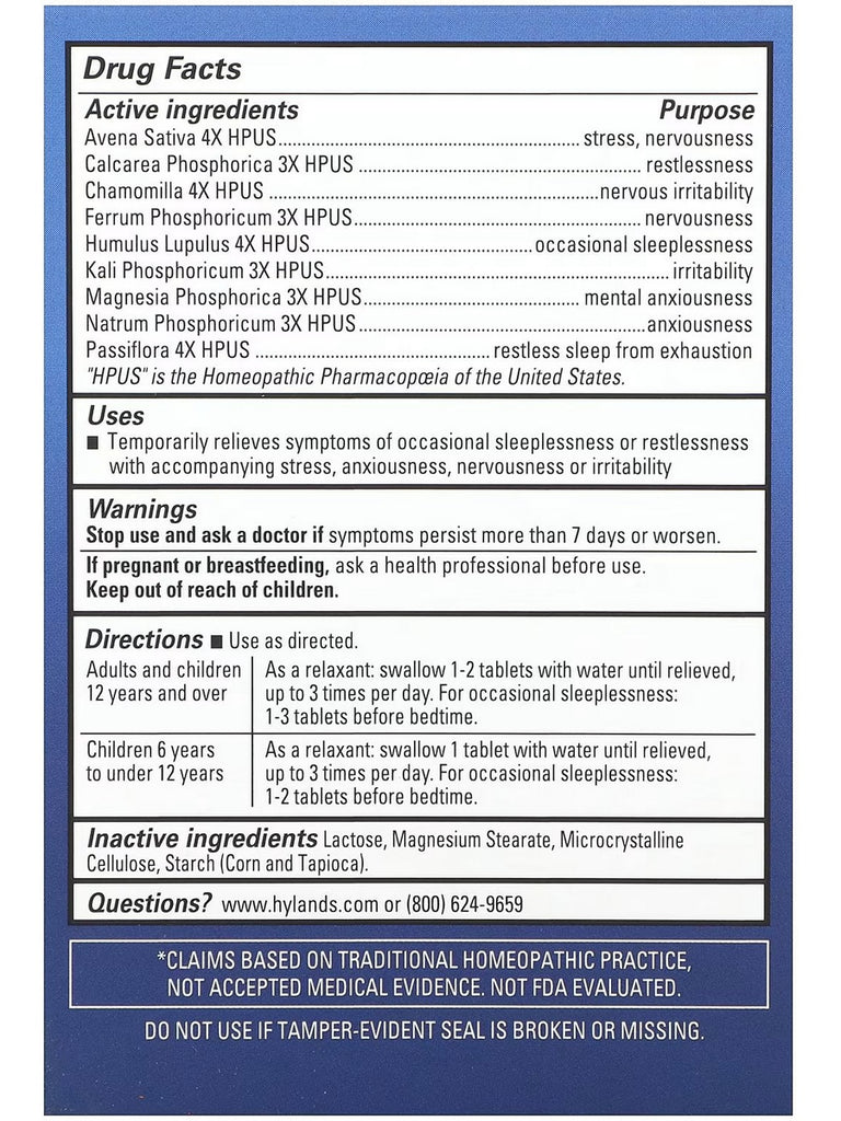Helps temporarily relieve the symptoms of occasional sleeplessness and restlessness with accompanying stress, anxiousness, nervousness and irritability.