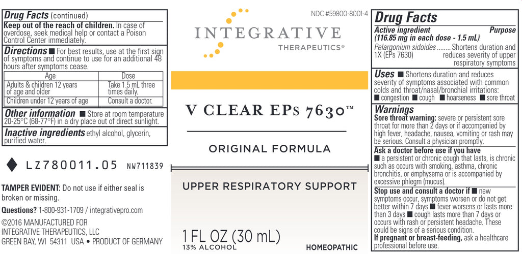 Integrative Therapeutics, V Clear EPs 7630™, Original Flavor, 1 fl oz