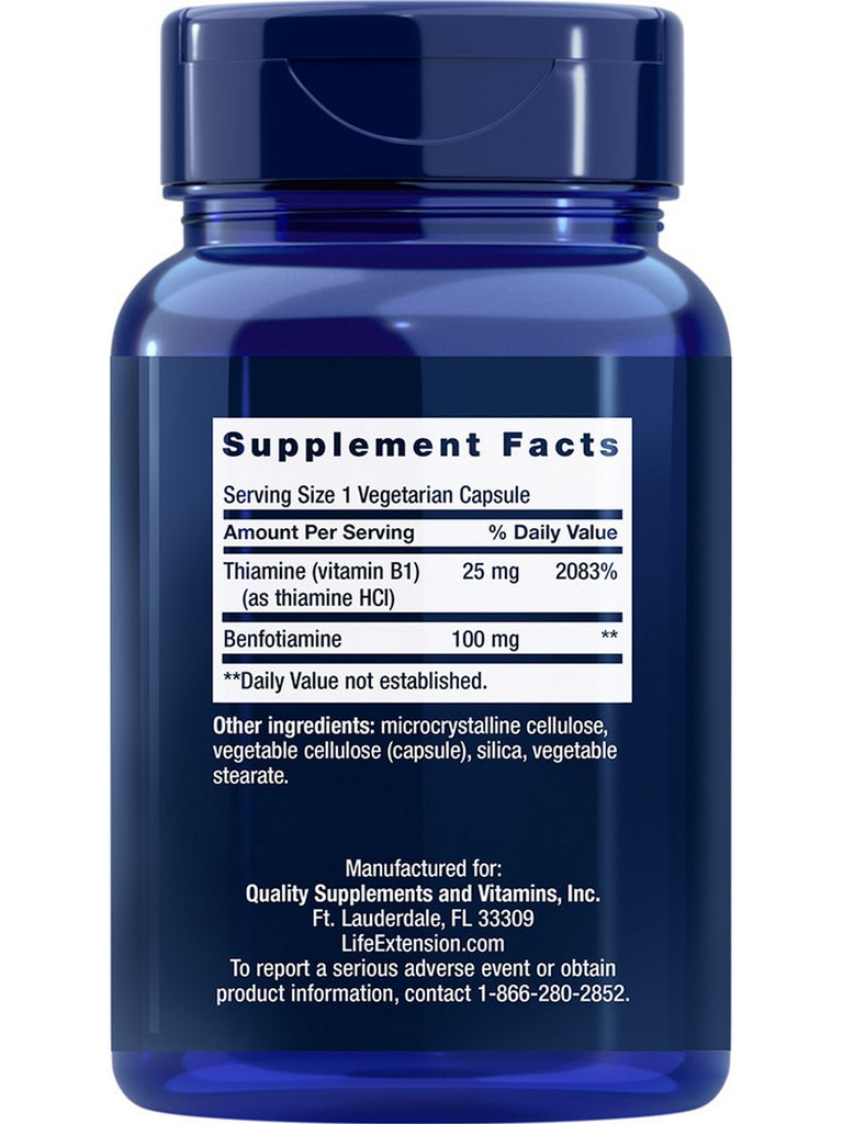 Life Extension, Benfotiamine with Thiamine, 100 mg, 120 vegetarian capsules