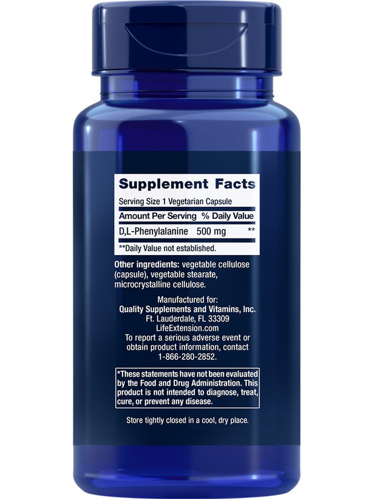 Life Extension, D, L-Phenylalanine Capsules, 500 mg, 100 vegetarian capsules