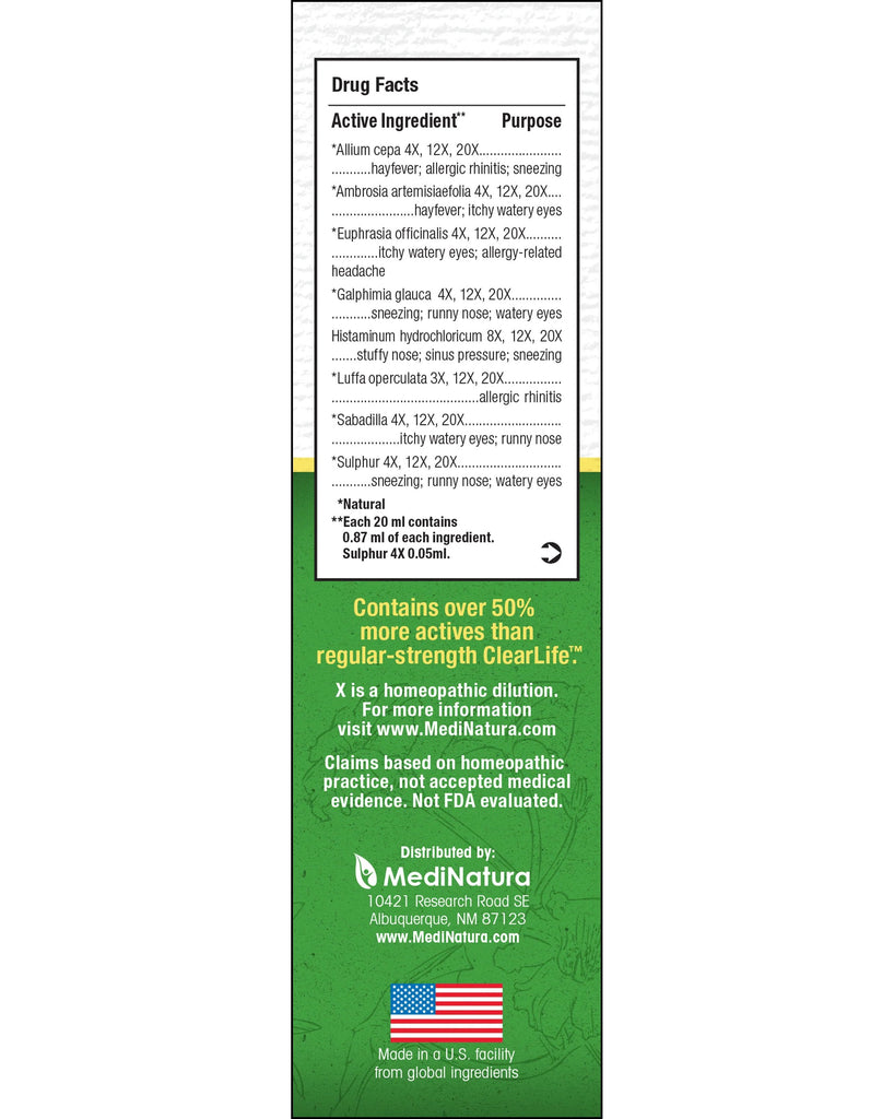 The ClearLife Extra Strength formula has been carefully crafted from eight active ingredients, each with three different potencies, for a total of 24 active allergy-relievers. This powerful formula provides maximum relief from a wide variety of allergy symptoms.