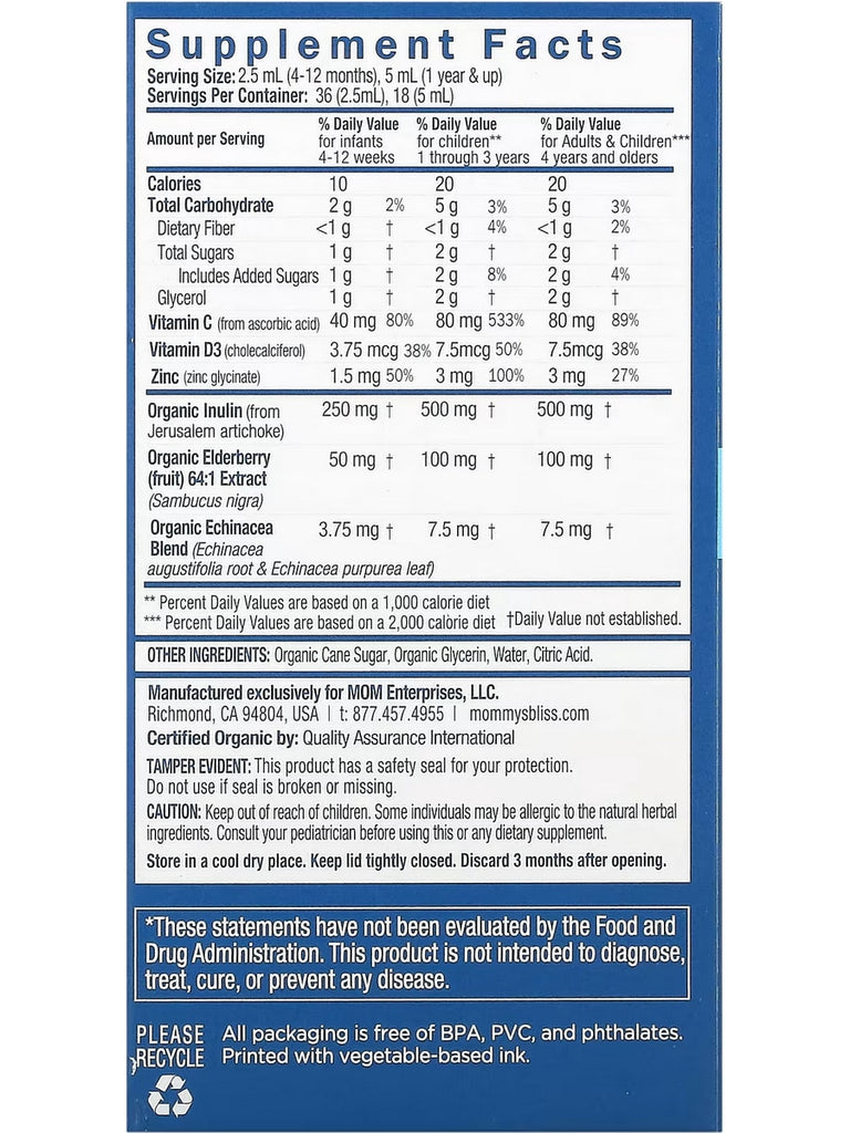 Mommy's Bliss, Organic Baby Elderberry Drops + Immunity Support, Age 4 Months +, 3 fl oz