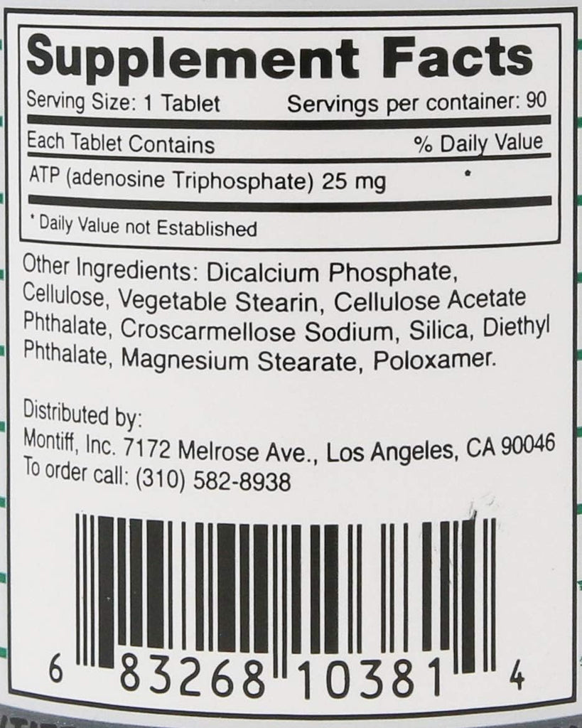 Montiffs ATP is the highest quality available. President Don Tyson was the first person to introduce the active enteric preparation of ATP in 1984 to the United States. The tablets are enterically coated to allow them to dissolve in the small intestine for optimal absorption and assimilation.