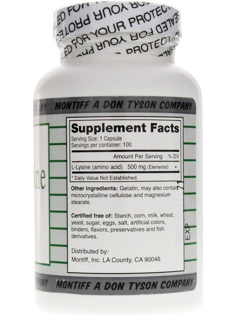 Montiff, Pure L-Lysine 500 mg, 100 Capsules