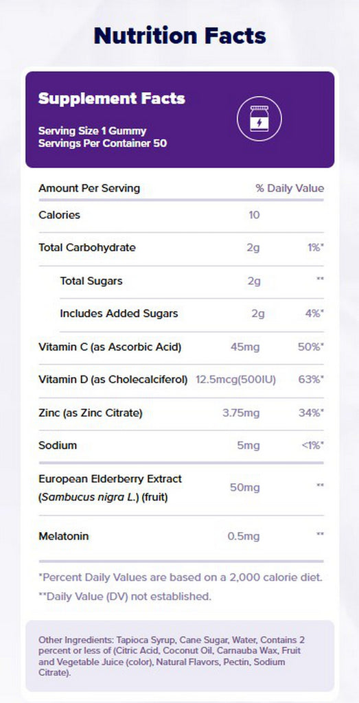 - Better sleep with gentle Melatonin formulation (0.5mg per gummy)