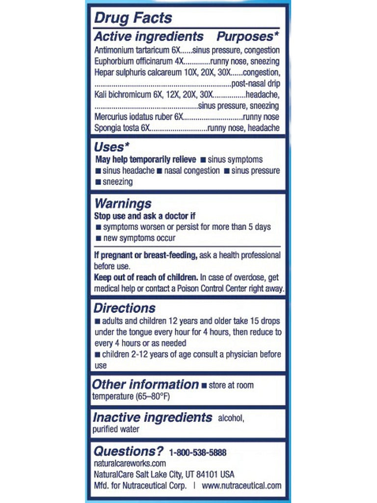 Previously NatraBio Sinus Relief, now NaturalCare SinuFix Drops.