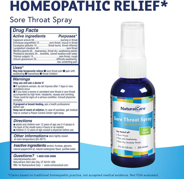 NaturalCare, Sore Throat Spray, Mint, 4 fl oz