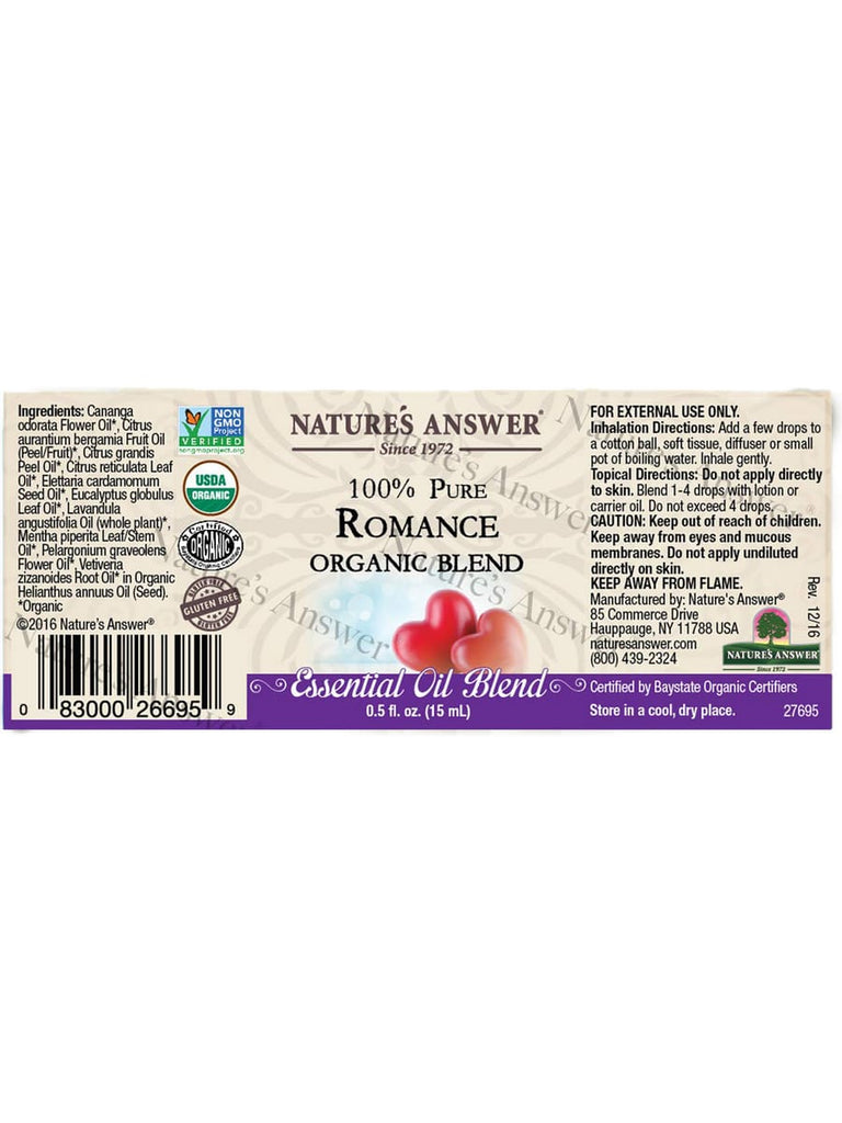 Nature's Answer, 100% Pure Romance, Organic Blend Essential Oil Blend, 0.5 fl oz