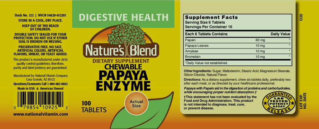 Nature's Blend, Chewable Papaya Enzyme, 100 Tablets