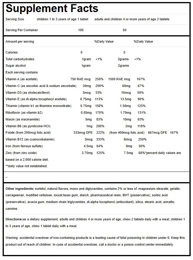- Honey Bears chewable multivitamin tablets blended with essential vitamins and minerals including Iron and Zinc!
