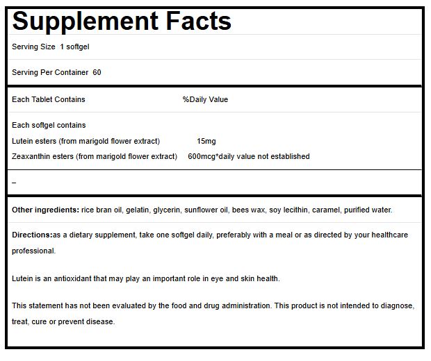 - These Lutein vitamins contain Lutein and Zeaxanthin esters from Marigold flower extract.