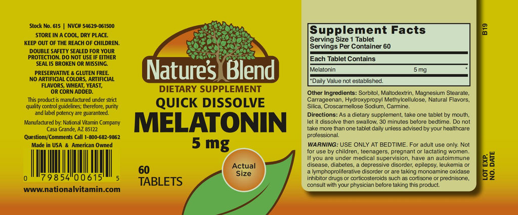 Nature's Blend, Melatonin 5 mg, Quick Dissolve Cherry Flavor, 60 Tablets