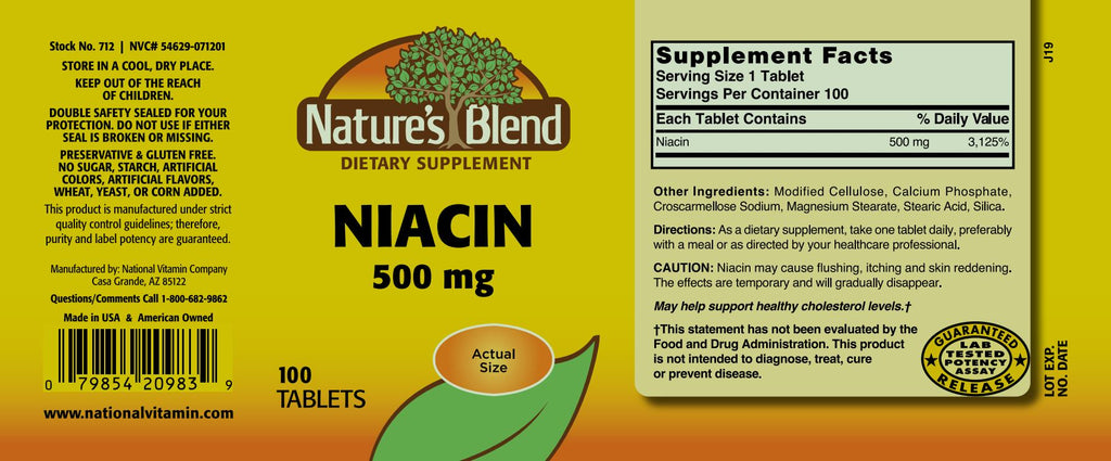 Nature's Blend, Niacin 500 mg, 100 Tablets