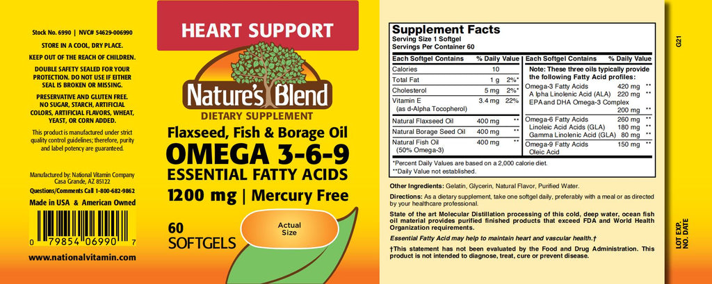 - For every softgel, you get the blend of essential fatty acids Omega 3, Omega 6, and Omega 9 from Flaxseed, Fish, and Borage oil.