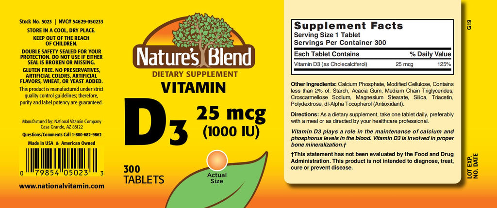 Nature's Blend, Vitamin D3 25mcg (1000IU), 300 Tablets